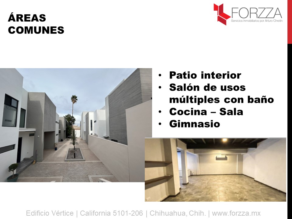 - Áreas comunes: Patio Central, Salón de usos múltiples con baño y cocina, gimnasio.