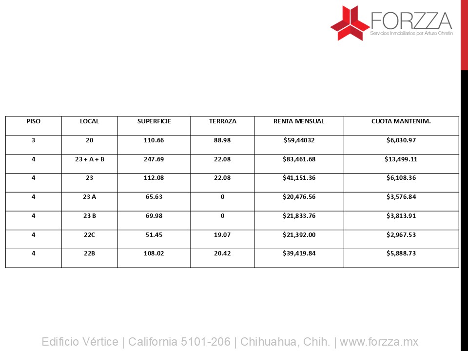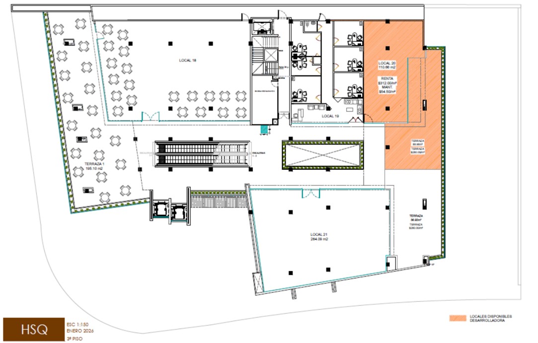 Precio de renta por m2 de terraza: $280 pesos