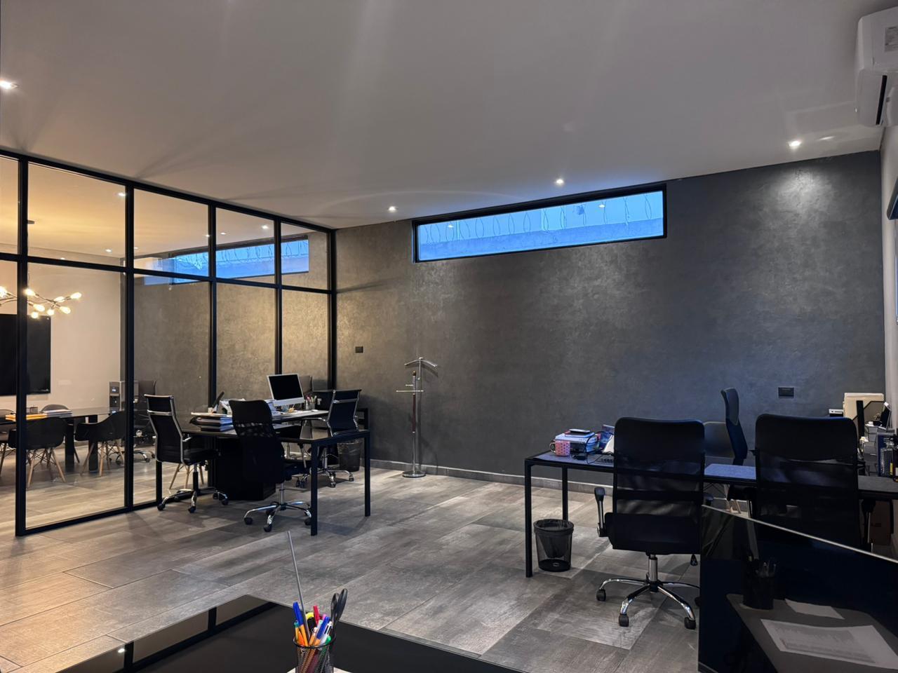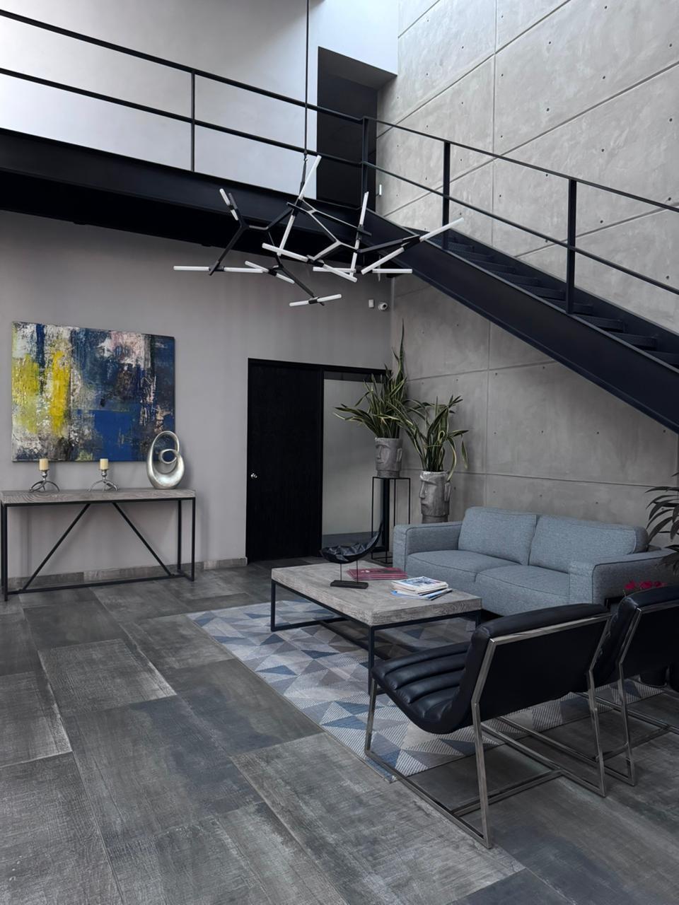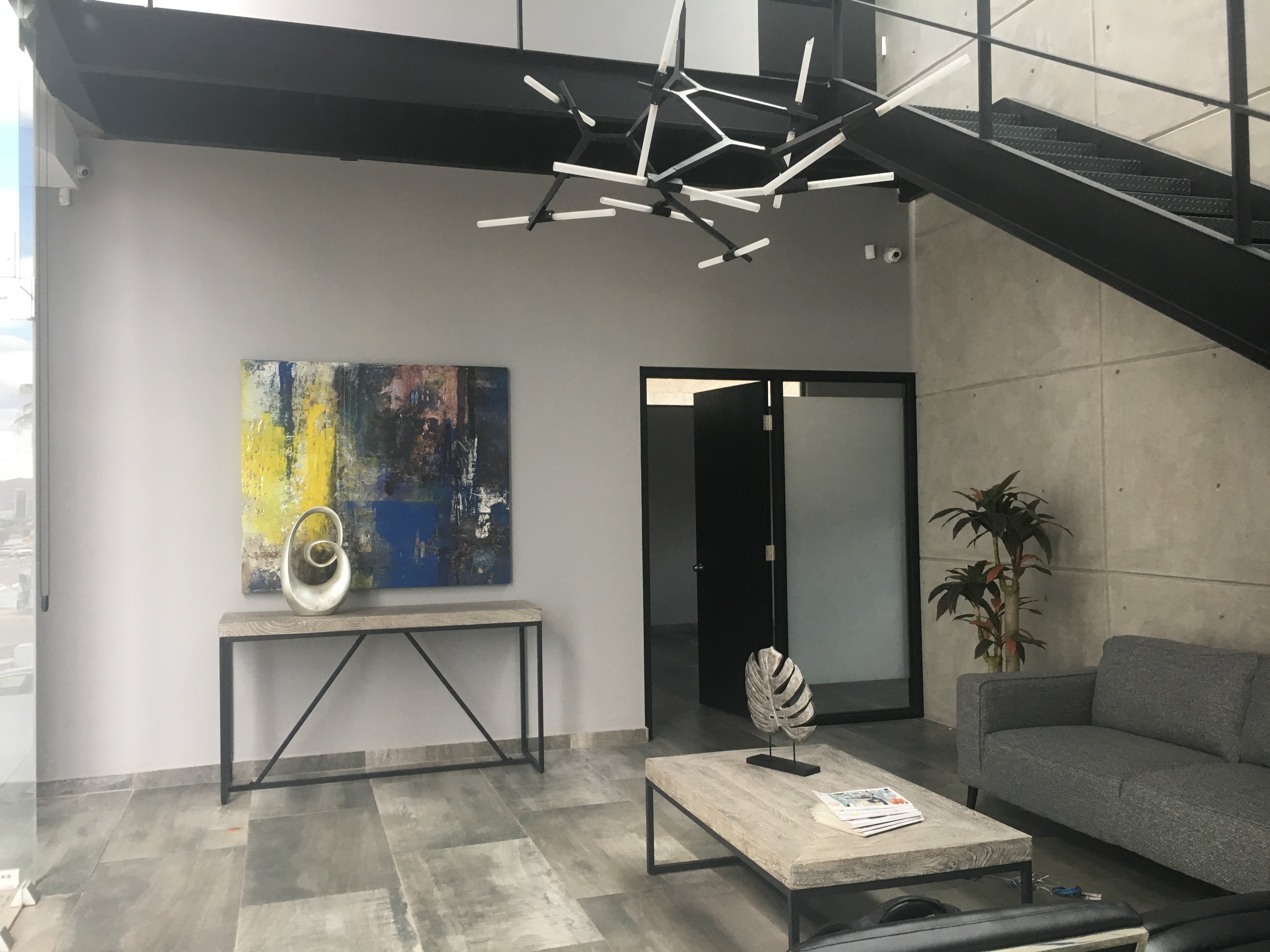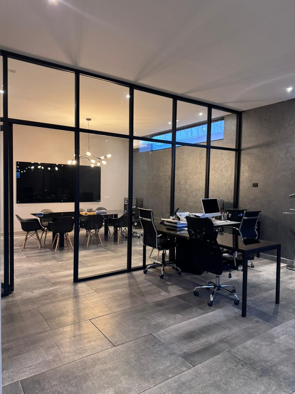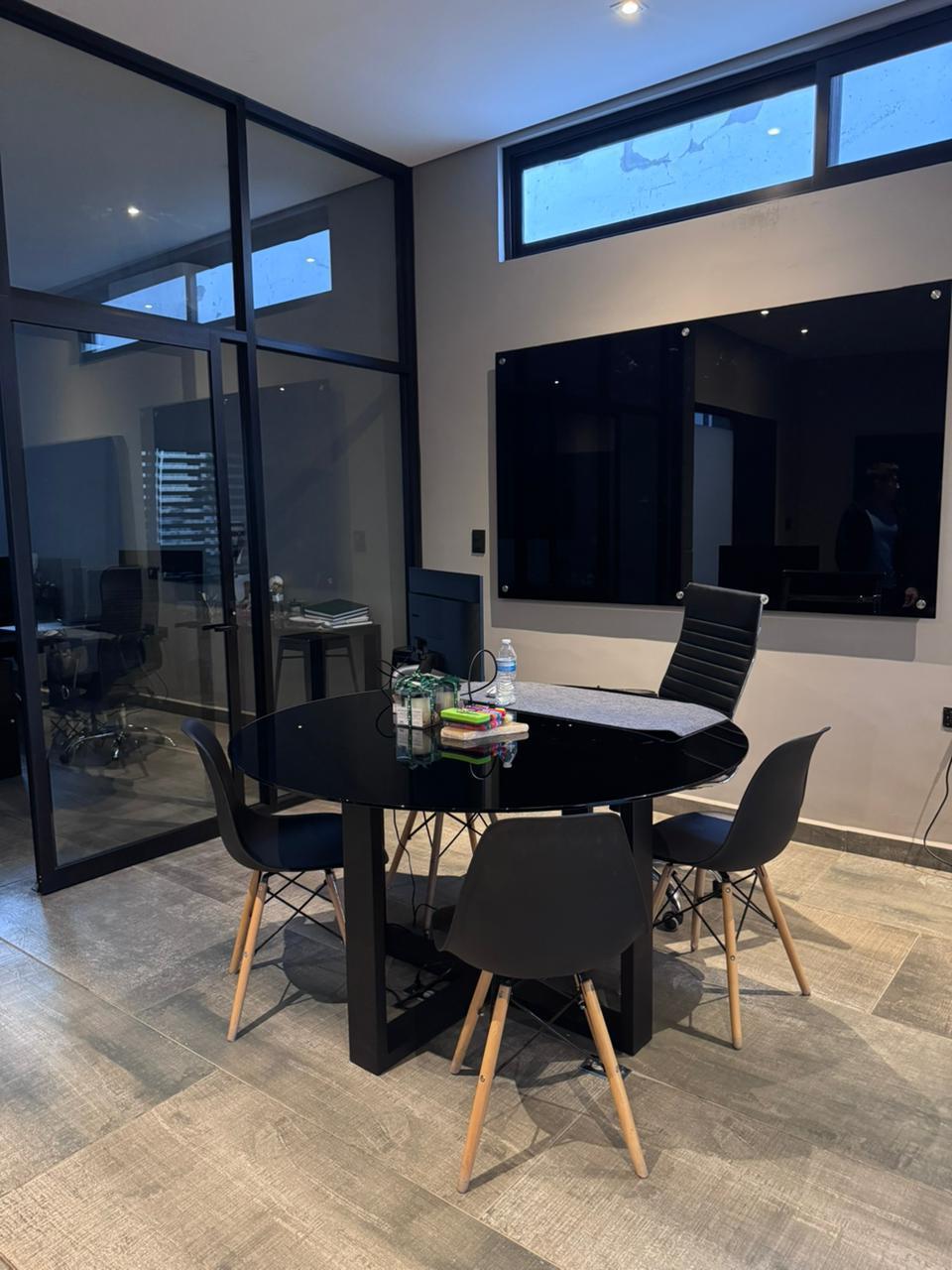 Equipamiento: 1 mesa de juntas de 8 personas con sillas, 5 escritorios directivos con 3 sillas cada uno, una estación de trabajo para 6 personas con sillas
